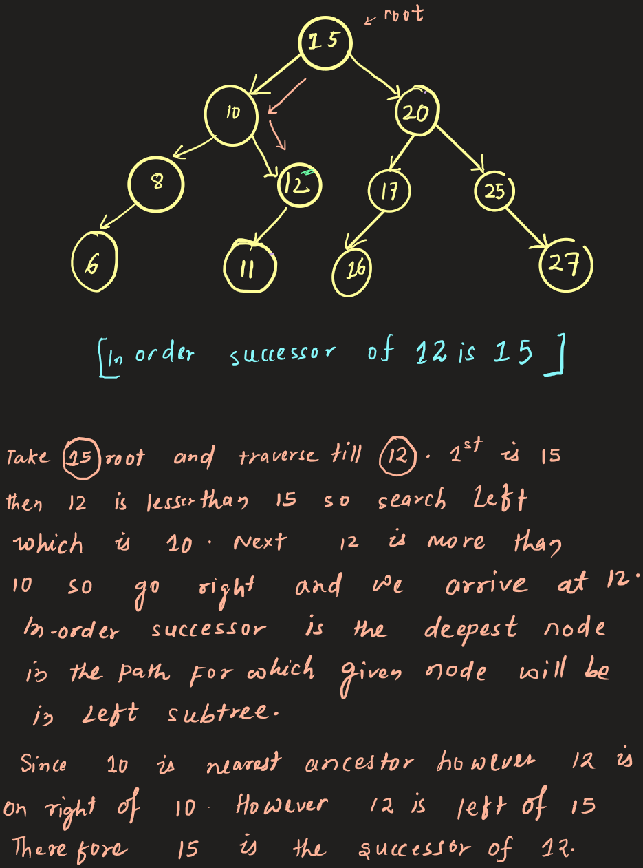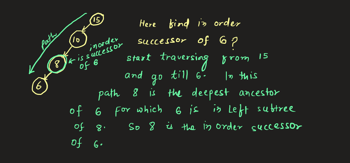 - Take a RIGHT then go extreme LEFT to get successor of given node