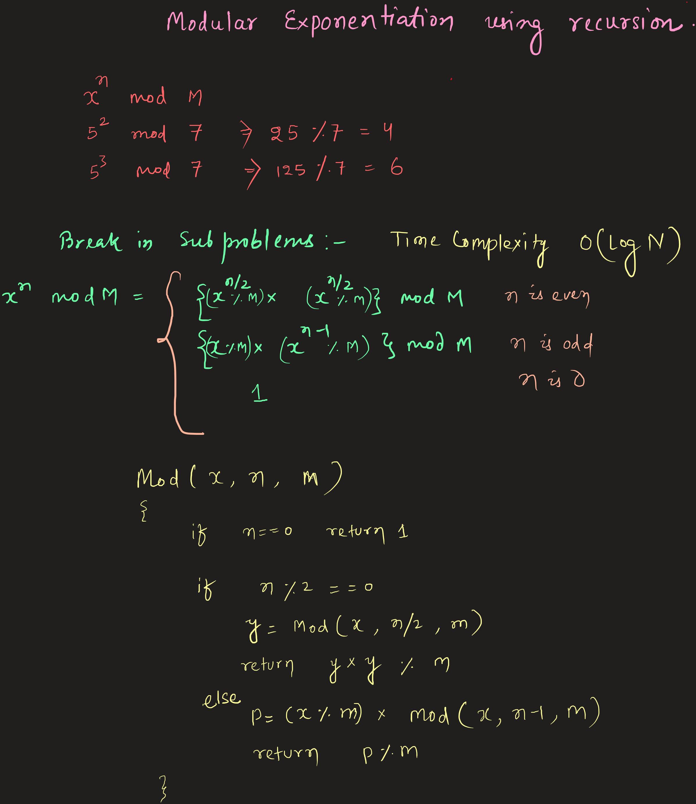 Modular Exponentiation is the remainder dividing up on Pow(x,n) by M.