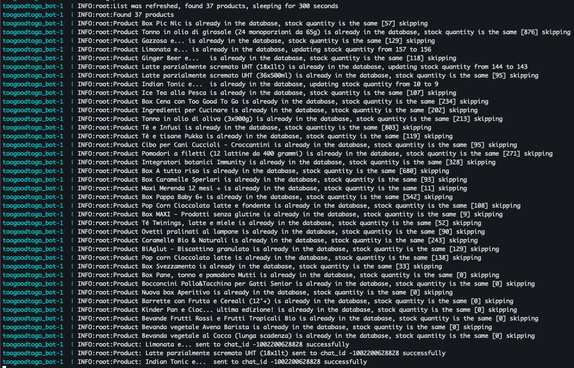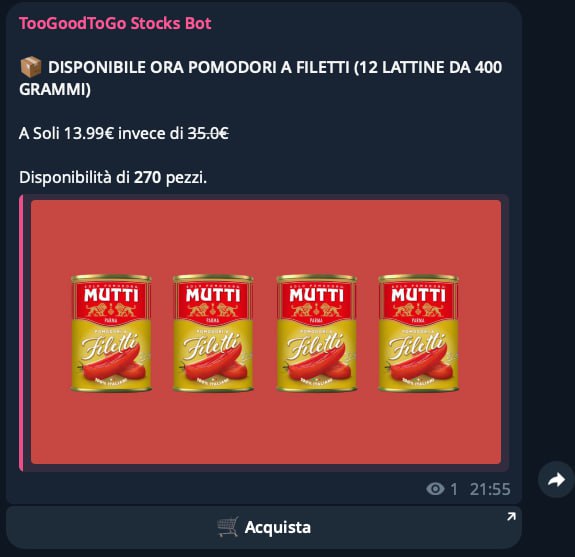 With this bot, you can track shippable boxes from TooGoodToGo directly on Telegram. It's useful for receiving notifications about price changes and when items are back in stock.
