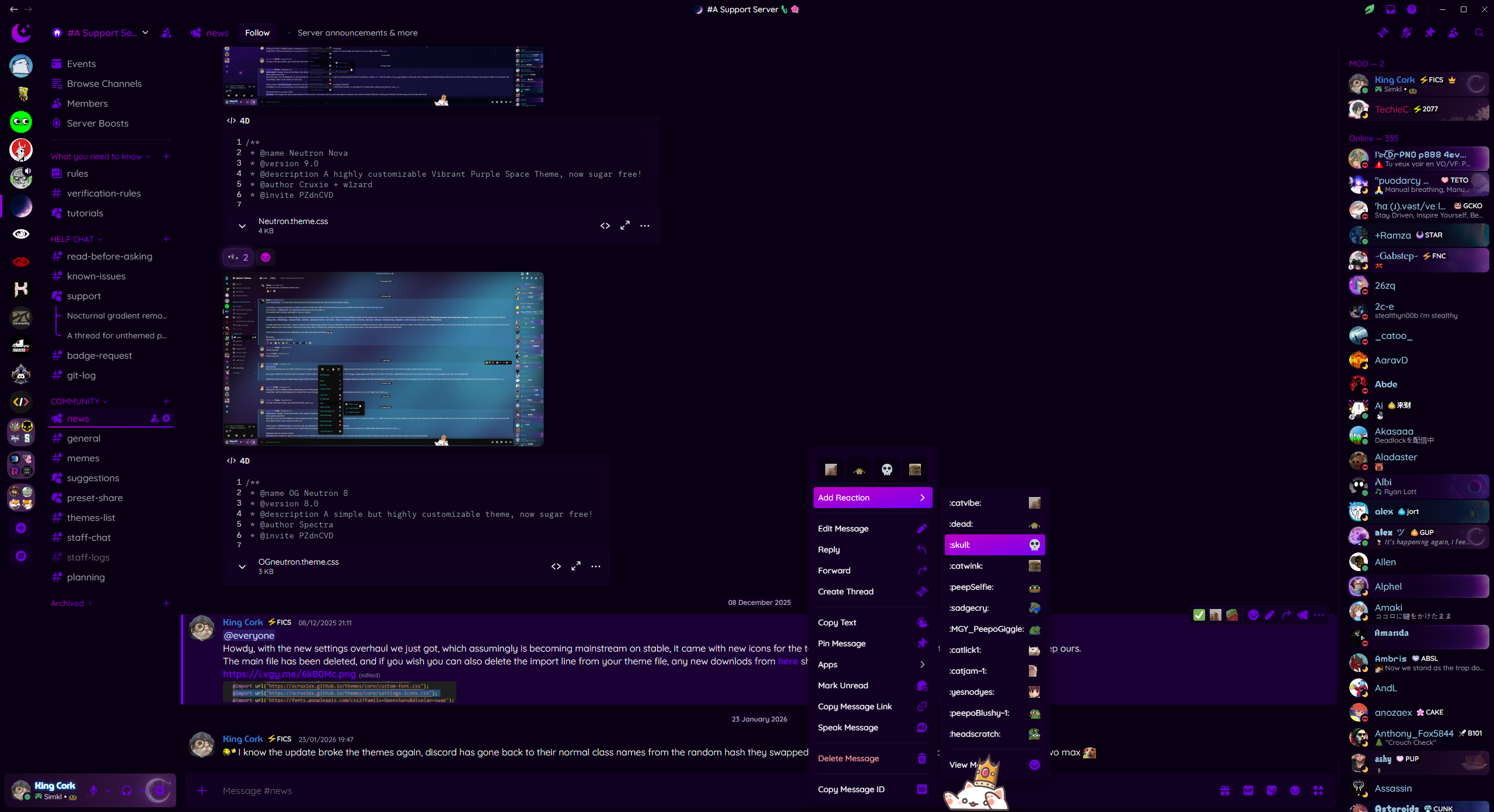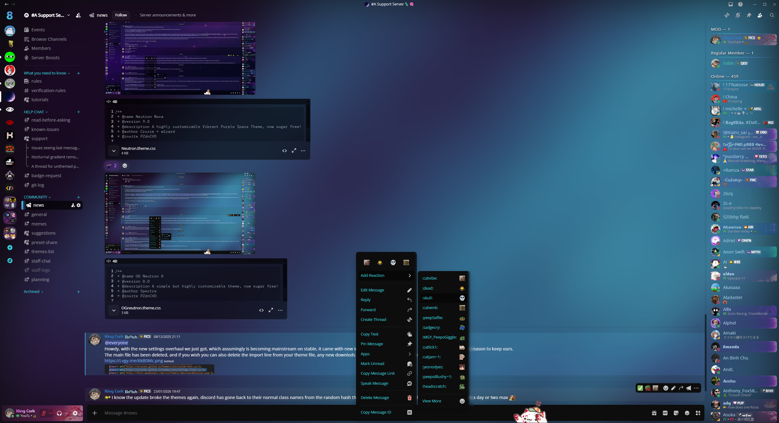For when default discord just isn't dark enough, a theme for those who live a night. Now with extra spice!