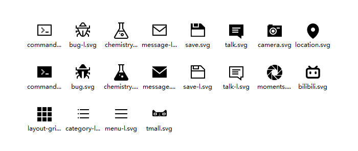 - 新增:[bug-l] [message] [save-l] [camera] [layout-grids] [category-l] [location] [command-l] [command]