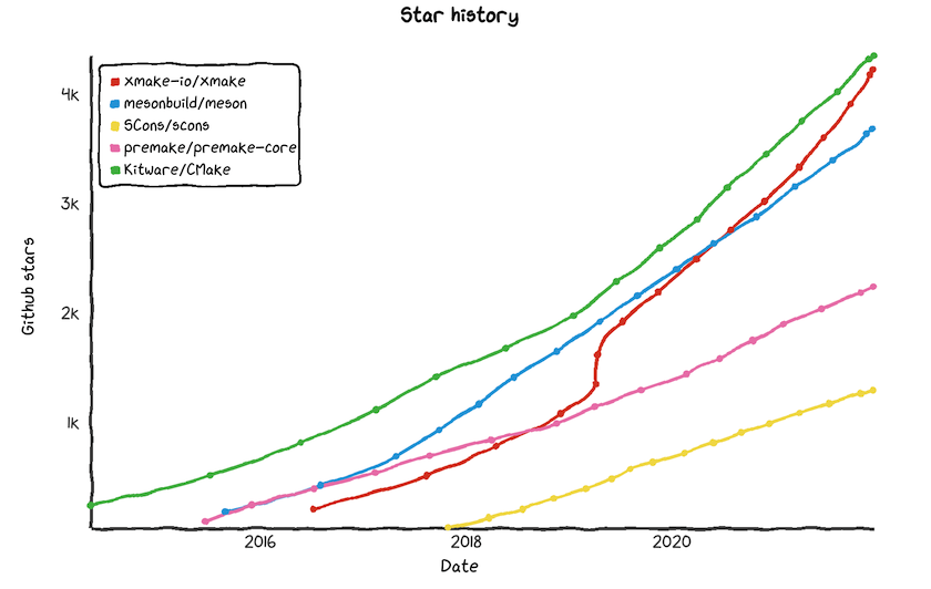 By the end of this year, Xmake had a total of 4.2k stars, processed 1.9k issues/pr, and had more than 8k multiple commits.